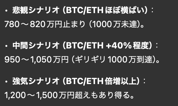 この方針であれば2026年12月までに1000万円は「ラッキーであればいける」という見立てです。